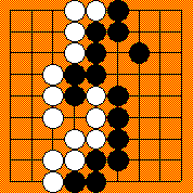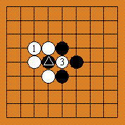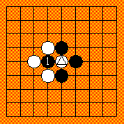 18図 四ツ目殺しを覚えたあなたなら喜んで黒1と白△を取るでしょう。